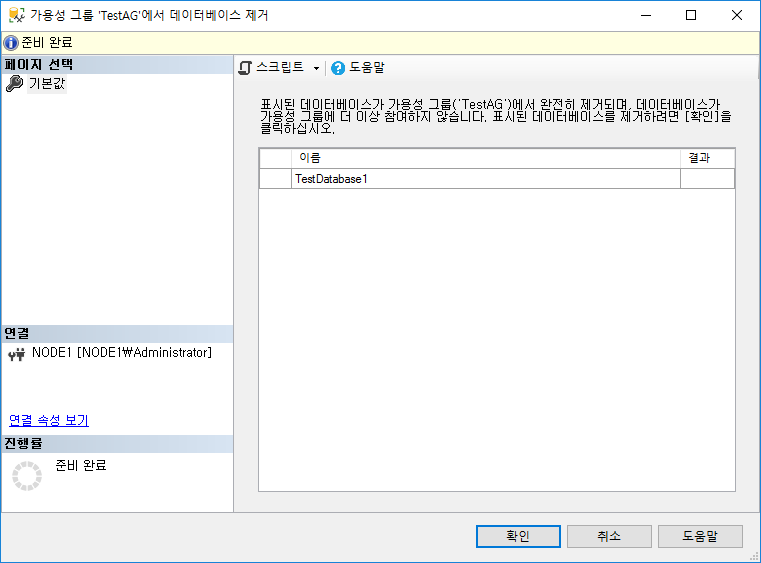 새로 복제에 추가할 test Table을 체크후 확인버튼을 클릭합니다.
