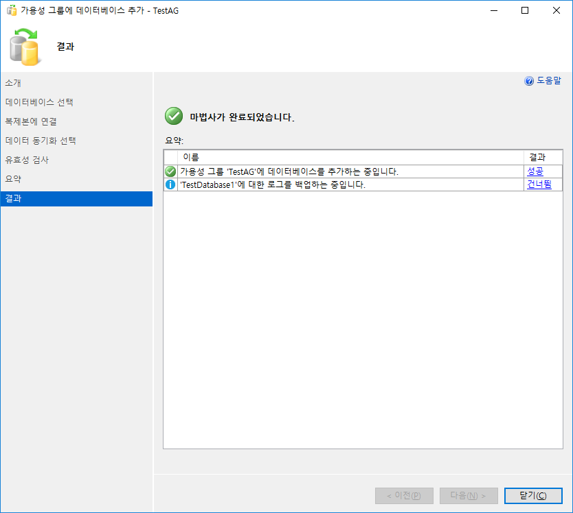 마법사 완료 창에서 마지막으로 요약된 정보가 맞는지 확인을 하고 마침을 누릅니다.