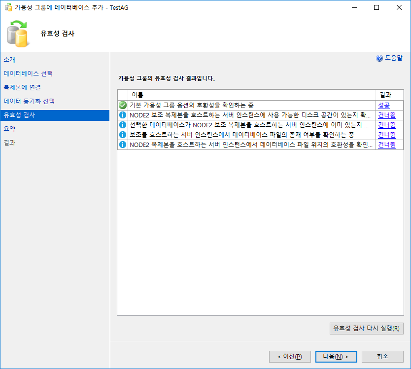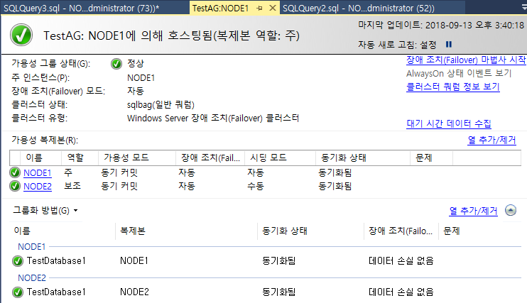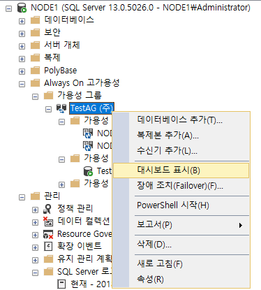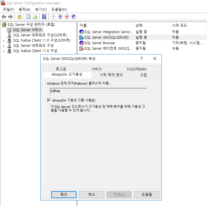 1. 모든 서버의 MSSQLServer 서비스와 SQLServerAgent 서비스의 시작 계정이 동일한 Domain Admins 그룹에 있는 계정으로 구성하는 것이 권장방안.... 시작 계정을 변경했다면, 서비스를 재시작.