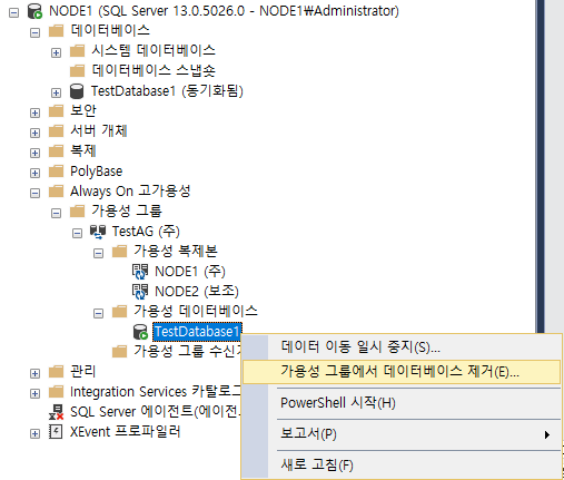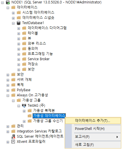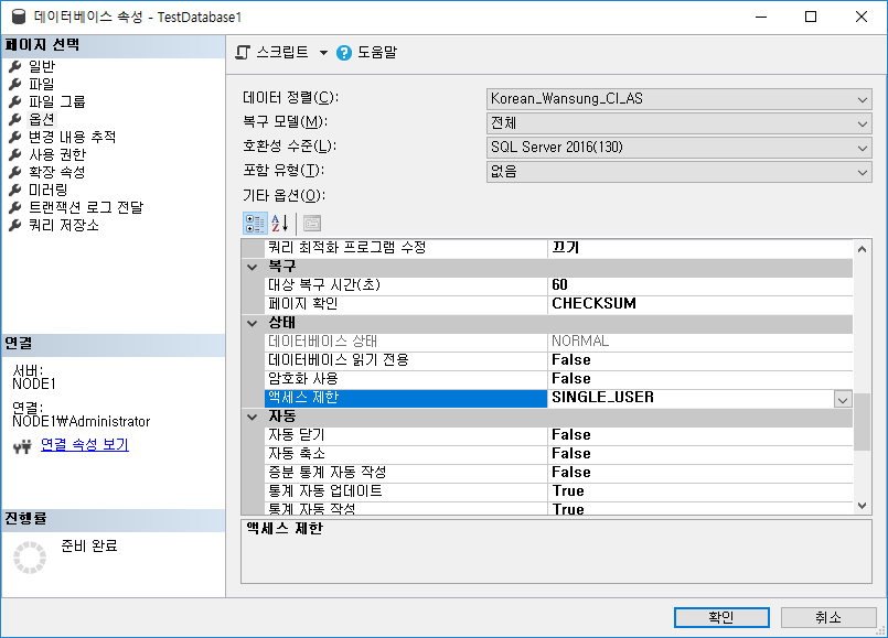 복제è로컬게시è해당 DB의 게시로 이동하여 마우스 우클릭후 속성을 선택합니다.