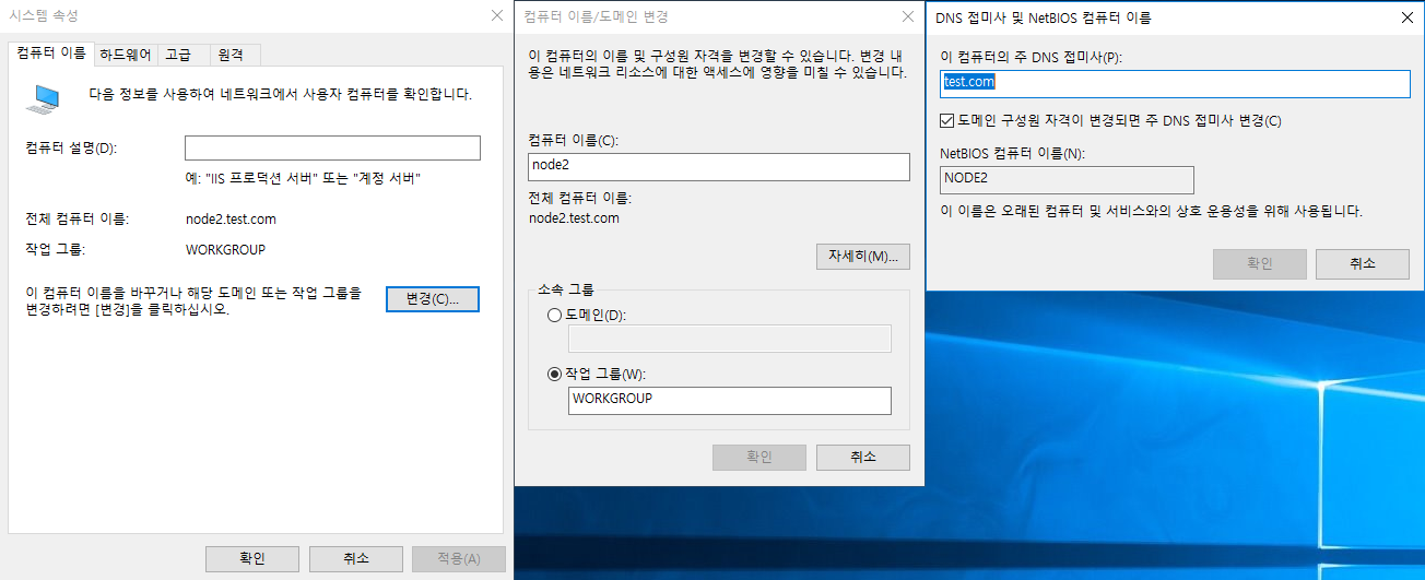 2. 본 문서의 복제구성 Test는 Domain 이 구성되지않은 환경에서 진행되며 모든구성원의 로컬Administrator계정 및 패스워드 와 sa계정의 패스워드는 동일하게 구성함