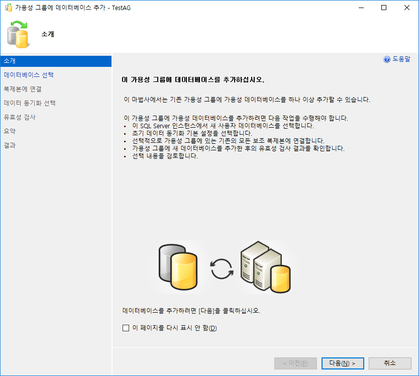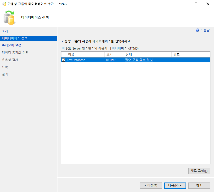 게시 데이터베이스 선택 창입니다. 게시할 데이터베이스를 선택하고 다음을 누릅니다.